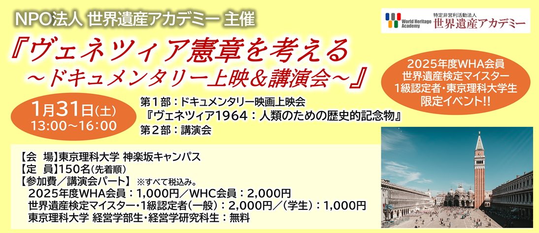 2026年1月31日(土)、『ヴェネツィア憲章を考える ~ドキュメンタリー上映&講演会~』のご案内
